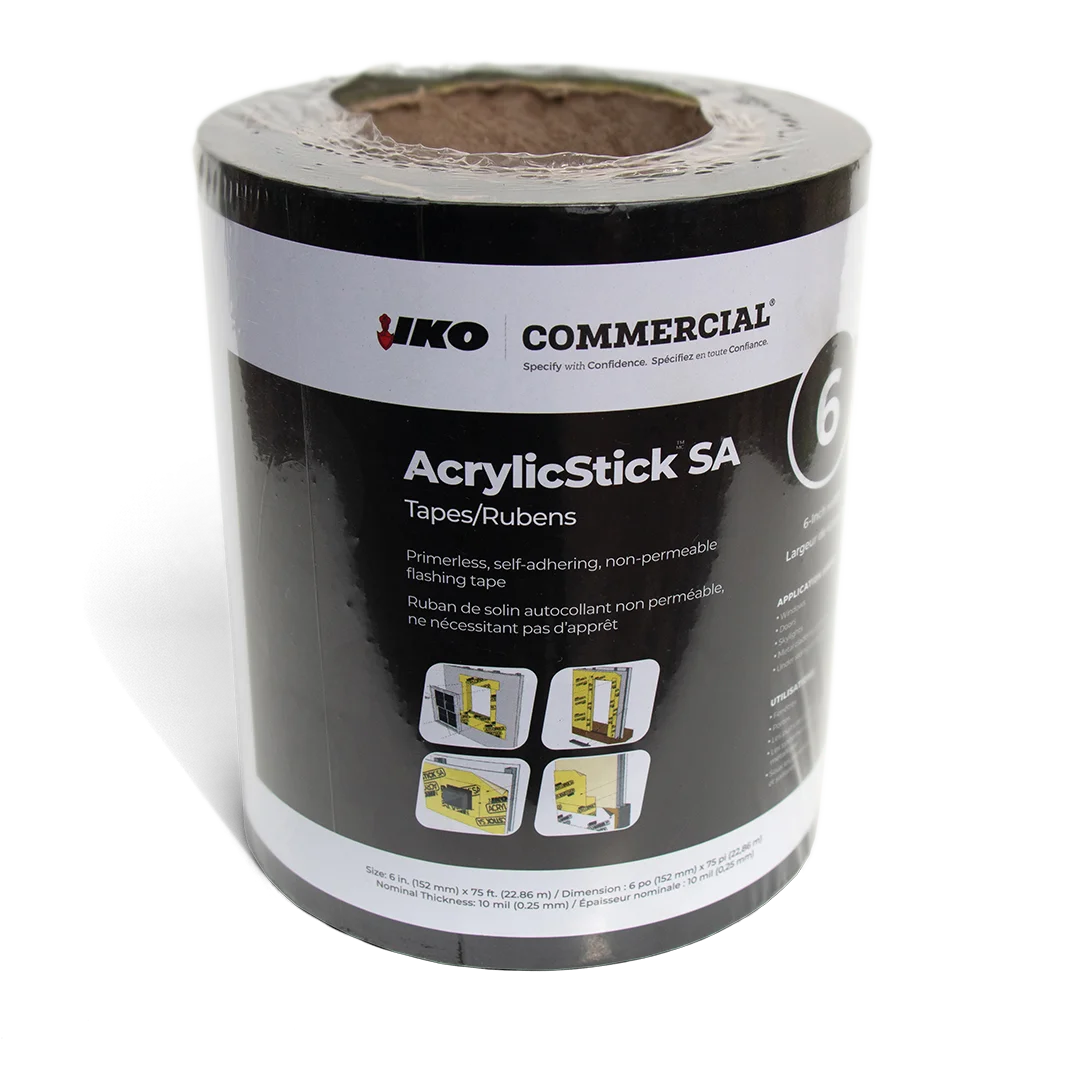 IKO AcrylicStick SA Tapes are intended for applications in specialized detail areas such as windows, doors, skylights, metal cladding systems and under siding at inside and outside corners.