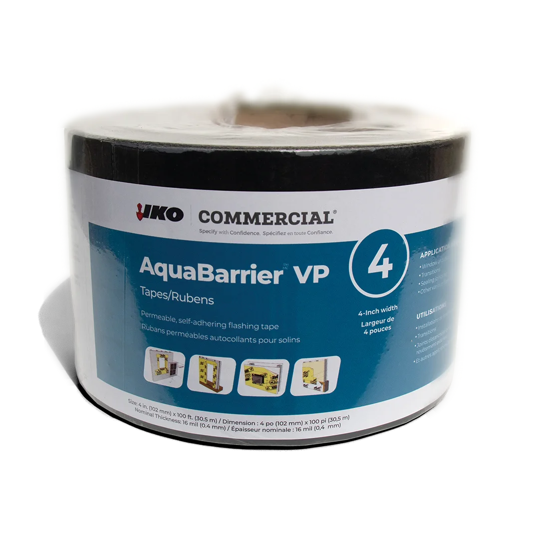 Count on IKO for the best in air and vapour barrier systems. IKO’s Non-Permeable Air/Vapour Barrier Systems include the AquaBarrier™ line of products and accessories. Engineered to meet or exceed industry standards for high performance, the line also includes self-adhering and torch-on wall membranes, through wall flashing membrane, foundation protection and flashing tapes.