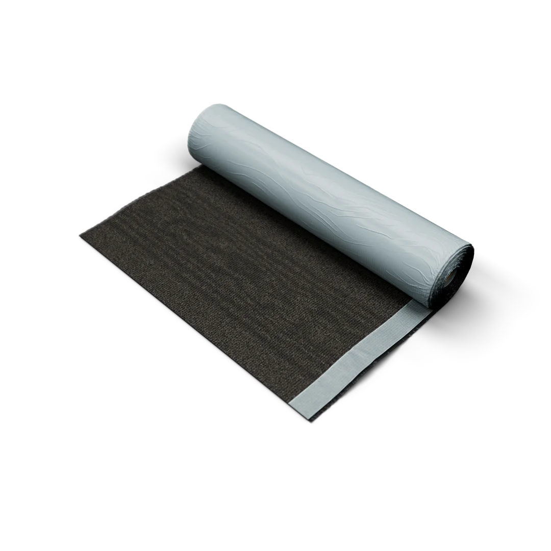 AquaBarrier BSW-V is made by integrally bonding a non-woven polyester/glass fiber composite mat with SBS modified rubberized asphalt. The top surface is a mineral aggregate and the back surfacing is a silicone treated release film that is easily removed.